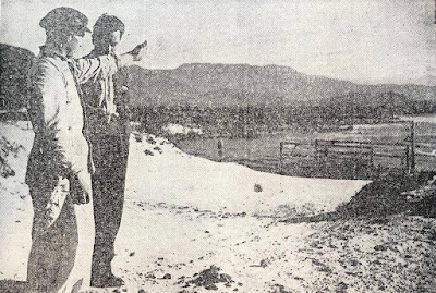 | Foto: Santos Vidarte (Ricardo João Borges, moço do farol, aponta para o Bento Gonçalves submerso)* |